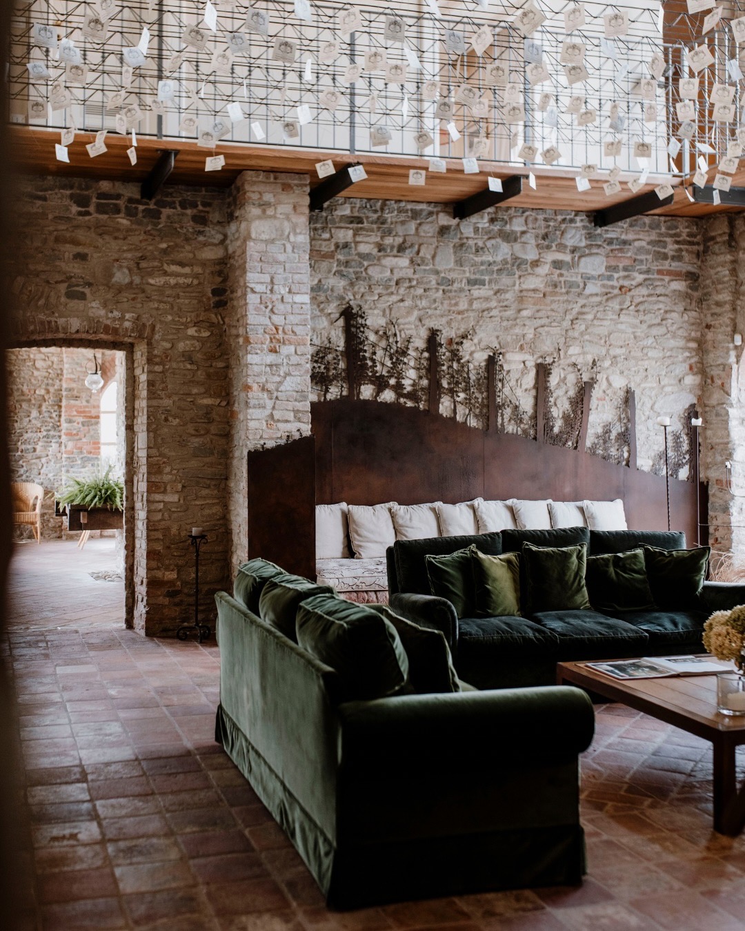 All’esterno, un giardino rigoglioso fa da cornice a un panorama collinare unico. La piscina, a forma di bottiglia, si integra perfettamente nel paesaggio, mentre il pergolato fiorito e la sala degustazioni invitano alla contemplazione. L’impressione è si soggiornare in una casa di campagna principesca, dove l’inverosimile appare e anche i sogni si fanno realtà.