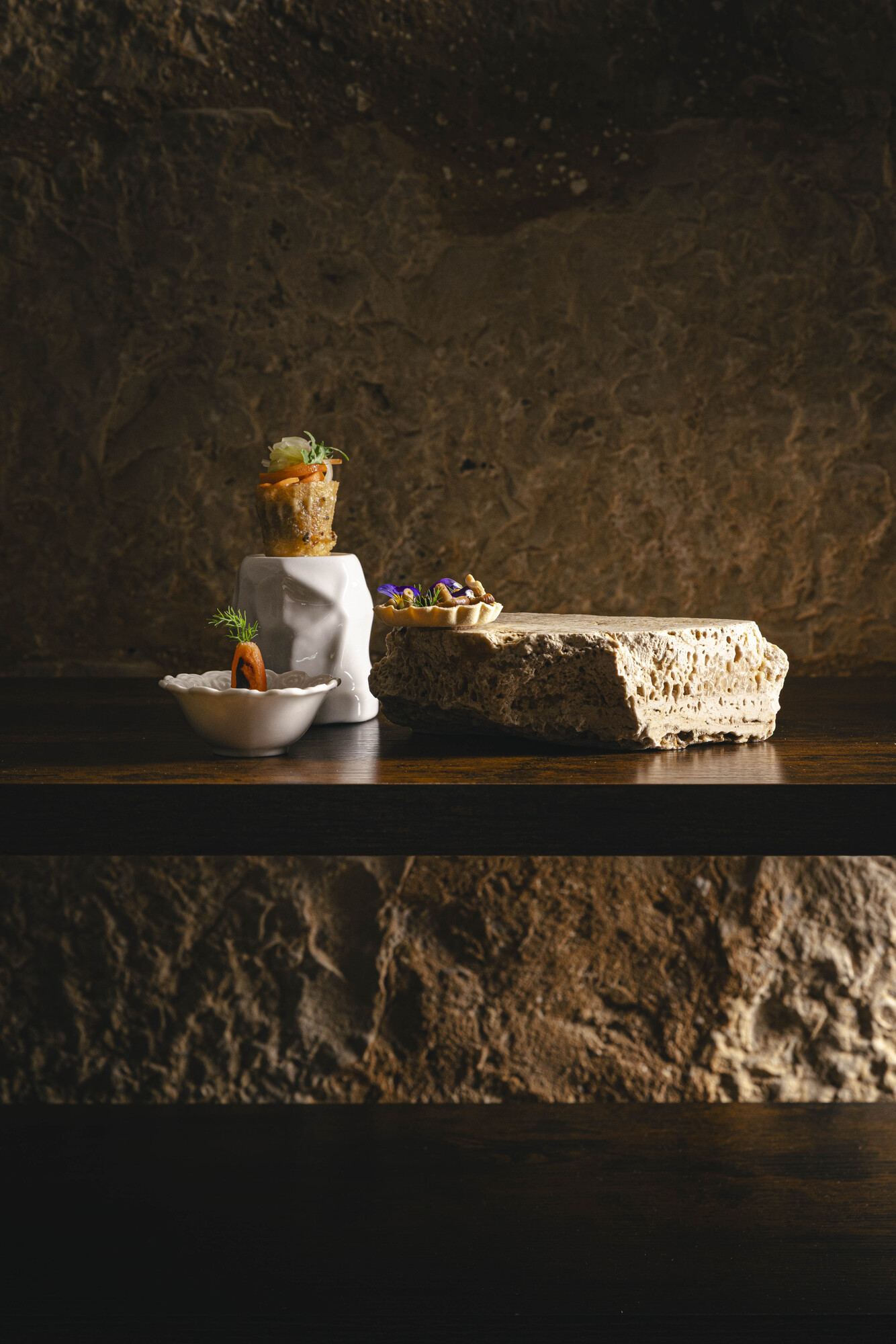 Risalendo dai sotterranei di Origini, il borgo medievale sembra più silenzioso, più lento, quasi a rispettare il ritmo che si è trovato tra le pietre e la brace. L’eco del fuoco, la dolcezza della terra, le note acidule e affumicate restano sulla pelle e sul palato, trasformando un pasto in un ricordo che vibra ancora. Si esce sazi di sapori e stimoli, con la certezza che la cucina può essere più di tecnica o creatività: può diventare memoria e sorpresa insieme, un viaggio che continua a vivere anche dopo la fine della cena stessa.